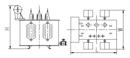 | 型号 | 额定容量 | 典型电压组合(kV) | 联结组标号 | 阻抗电压(%) | 总重(t) | 参考尺寸(mm) L*W*H | 空载损耗 | 负载损耗(W) |