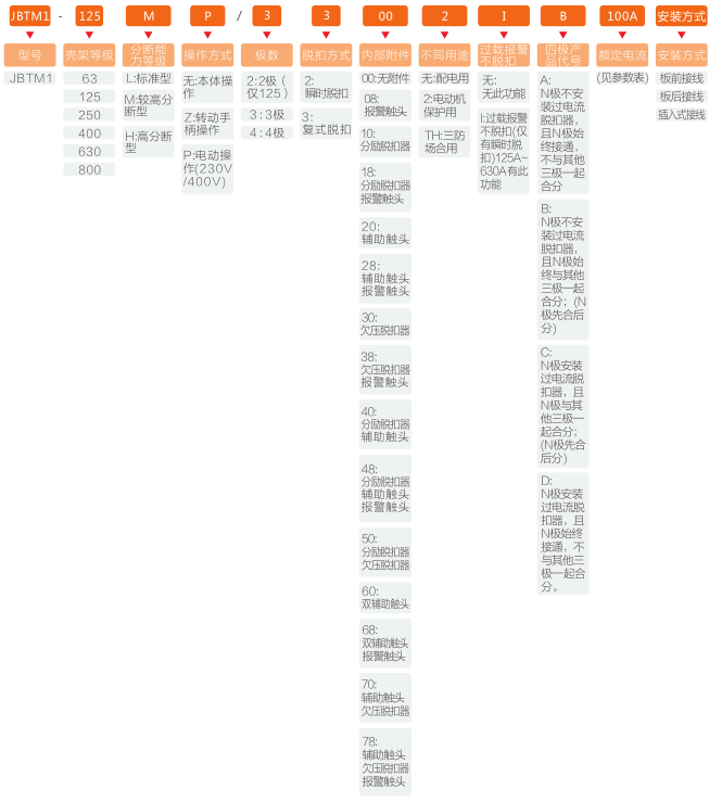 JBTM1-125分为:16A、20A、25A、32A、40A、50A、63A、80A、100A、125A;