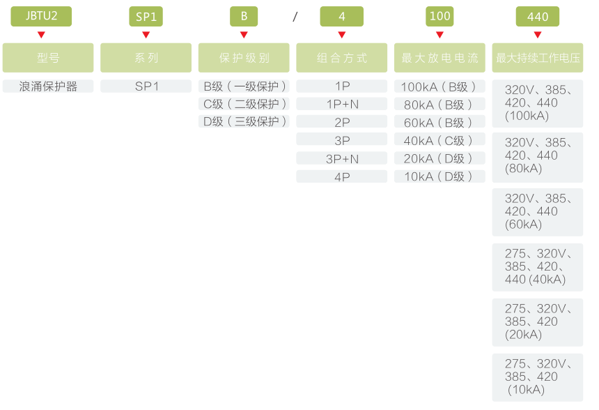 按最大放电电流Imax(8/20us)分为:10kA、20kA、40kA、60kA、80kA、100kA;